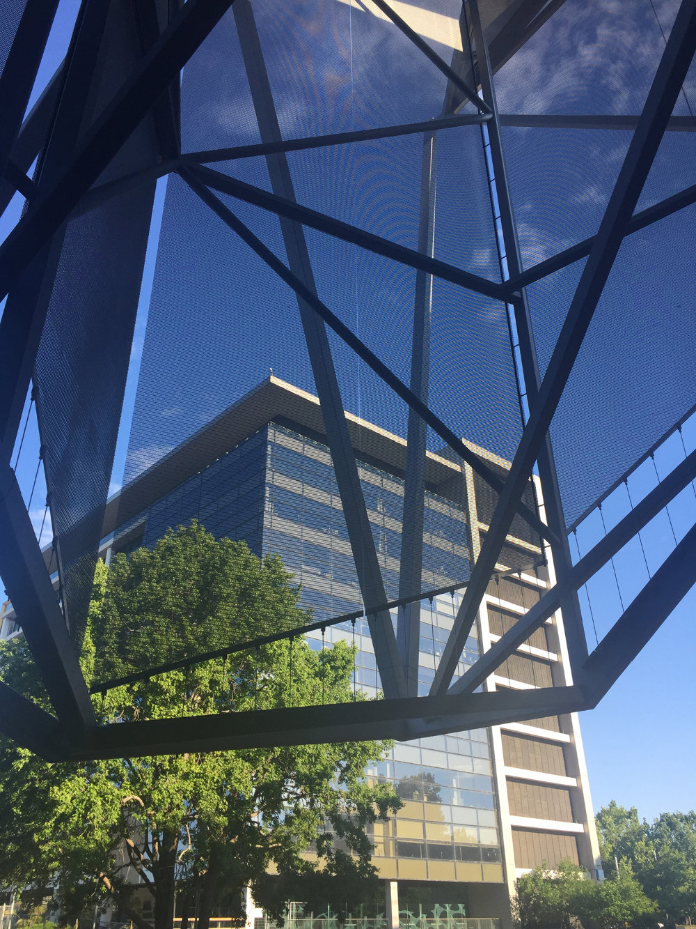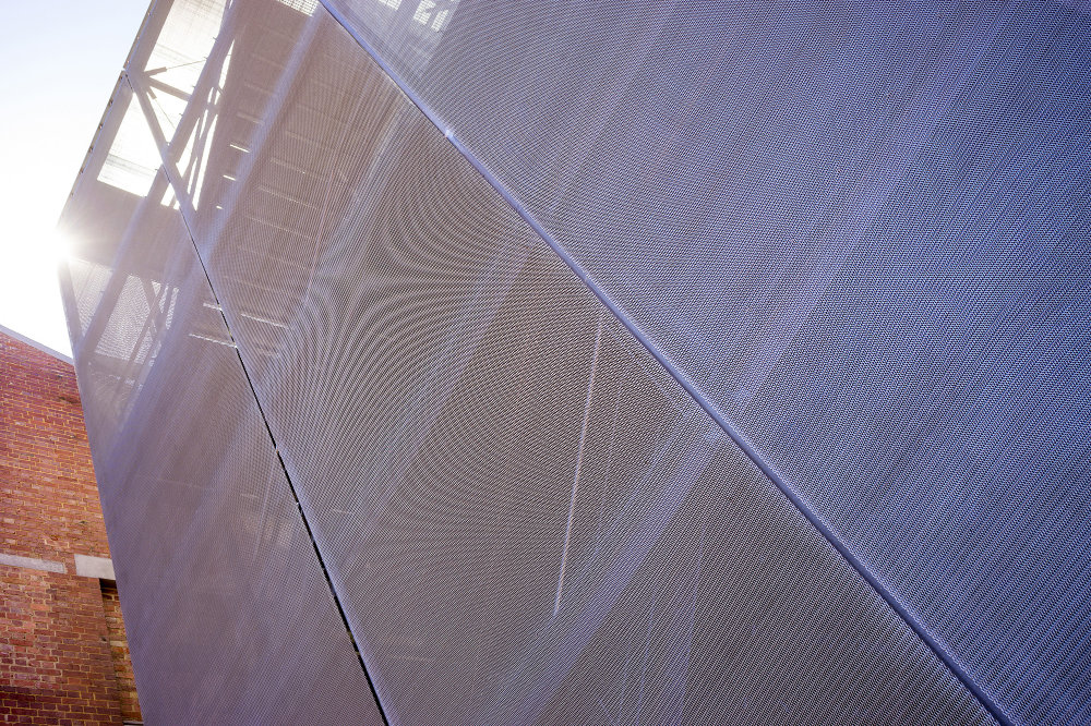 The tension system uses the inherent nature of wire to act as a fabric that lets the design community develop unique facade designs.